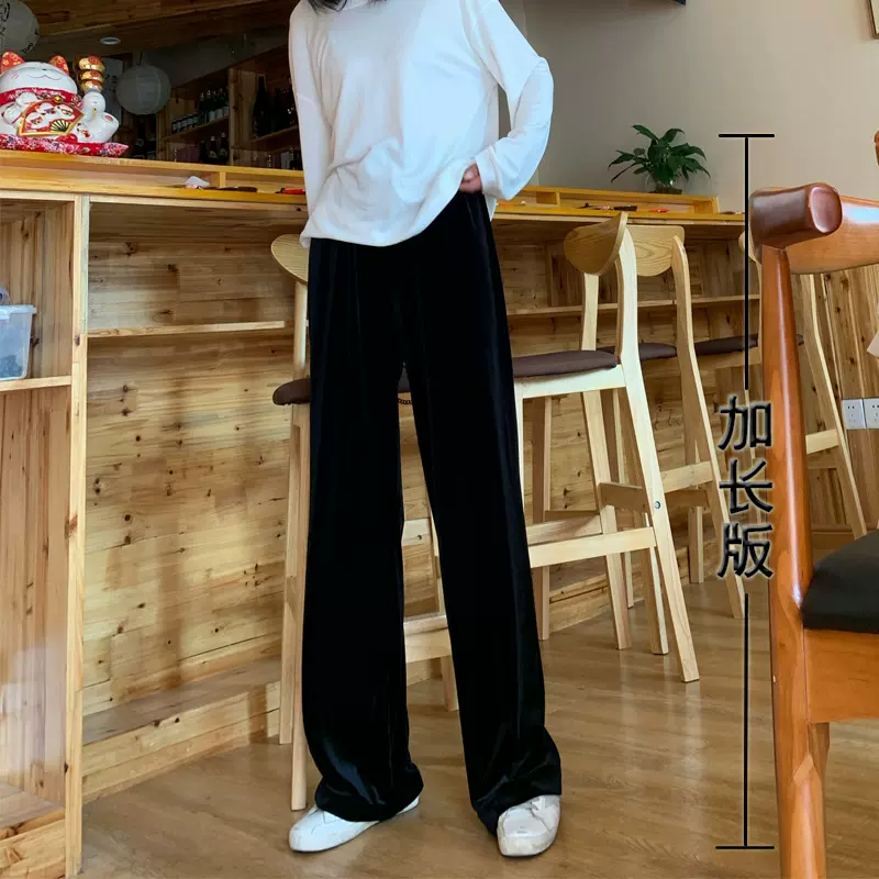 丝绒阔腿裤加长版拖地不打皱女裤宽松慵懒